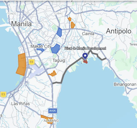 The Rizal de Manila Development is a once‑in‑a‑generation land banking and site‑improvement opportunity located in eastern Metro Manila. The project sponsor is in possession of the certified (and verified) titles for the property which is located directly along Laguna de Bay, bounded on the west by the Pasig River, and bisected by the C‑6 roadway, one of Metro Manila’s most important emerging transport corridors.